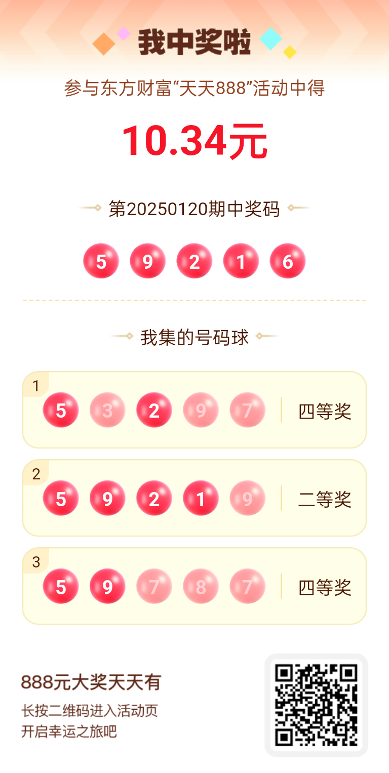 第20250120期天天888活动共1608人中奖,名单如下,请中奖用户在今日15:10前前往活动页面点击【立即领奖】按钮领奖,逾期奖励失效。