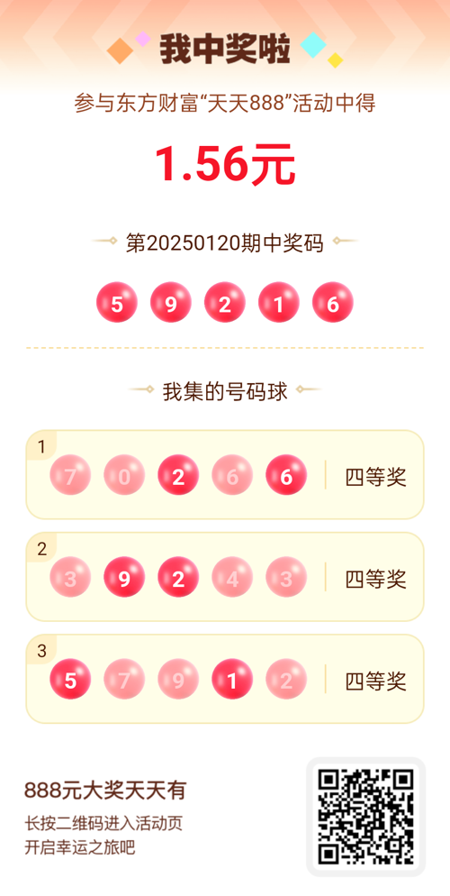 好运来敲门!我在东方财富“天天888”抽奖活动中抽中1.56元红包!快来参与,下一个幸运星可能就是你!
