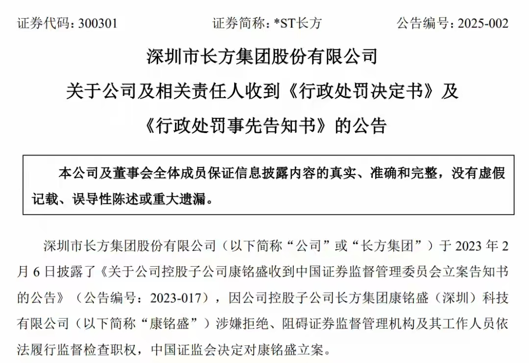 还不仅仅如此,证券监管部门还已经查实,上市公司还通过销售返利不入账等方式,虚增利润总额和应收账款,最终导致上市公司连续3年虚增了利润和资产总额,导致财务报表异常,最终负责年审的会计师事务所出具了非标意见,按照新的监管要求,上市公司变成了*ST长方,命悬一线。