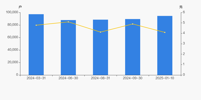 自2024年6月30日以来,公司股东户数连续3期上涨,截至目前增幅为7.57%。2024年6月30日至2025年1月10日区间股价下降19.80%。