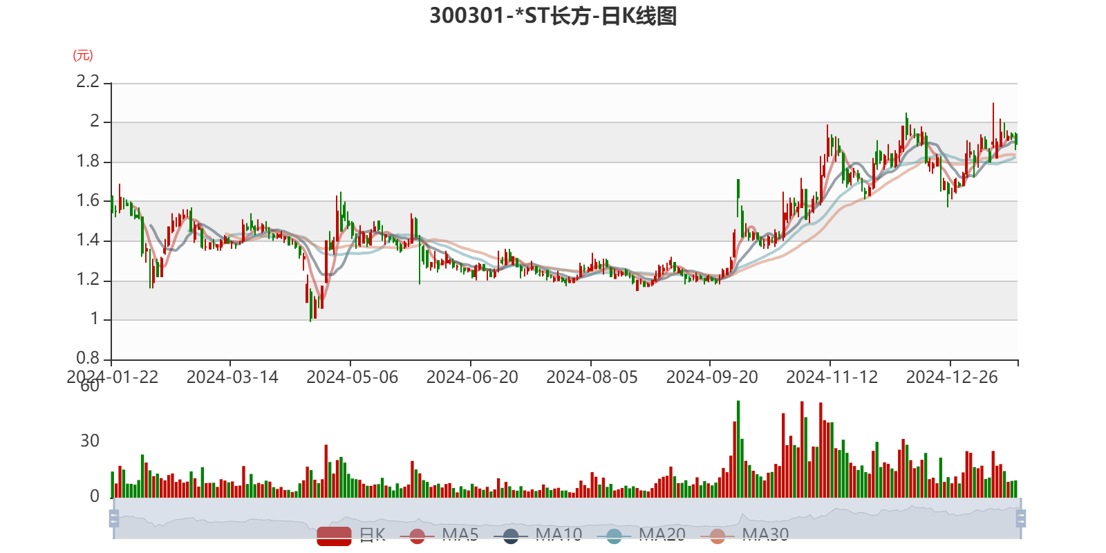 中证智能财讯 *ST长方(300301)1月21日晚间披露2024年度业绩预告,预计2024年实现营业收入4.6亿元至5.8亿元;归母净利润亏损4200万元至5000万元,上年同期亏损1.42亿元;扣非净利润亏损5600万元至6400万元,上年同期亏损1.5亿元。以1月21日收盘价计算,*ST长方目前市盈率(TTM)约为-31.37倍至-37.34倍,市净率(LF)约110.83倍,市销率(TTM)约3.02倍。