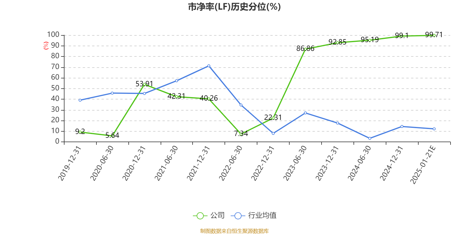 市盈率、市净率为负时,不显示当期分位数,会导致折线图中断。