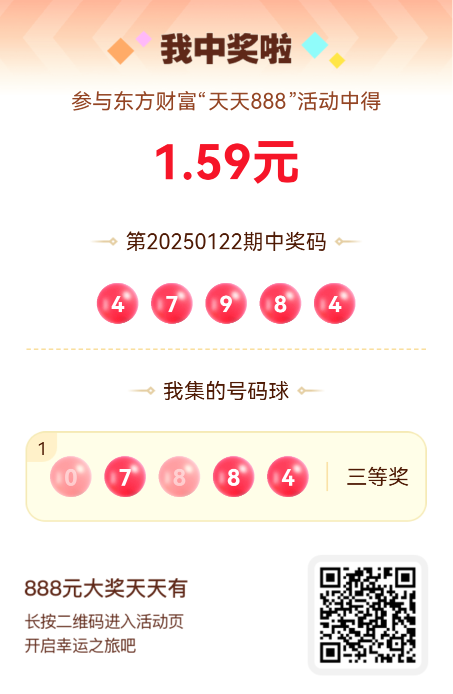 好运来敲门!我在东方财富“天天888”抽奖活动中抽中1.59元红包!快来参与,下一个幸运星可能就是你!