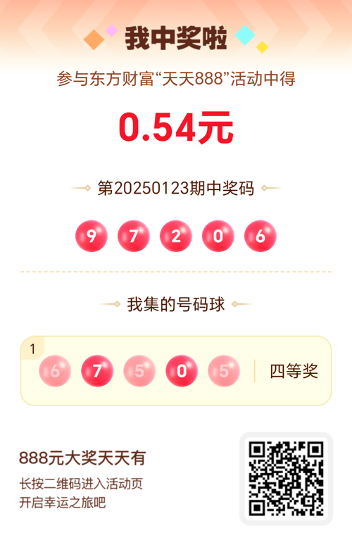 好运来敲门!我在东方财富“天天888”抽奖活动中抽中0.54元红包!快来参与,下一个幸运星可能就是你!