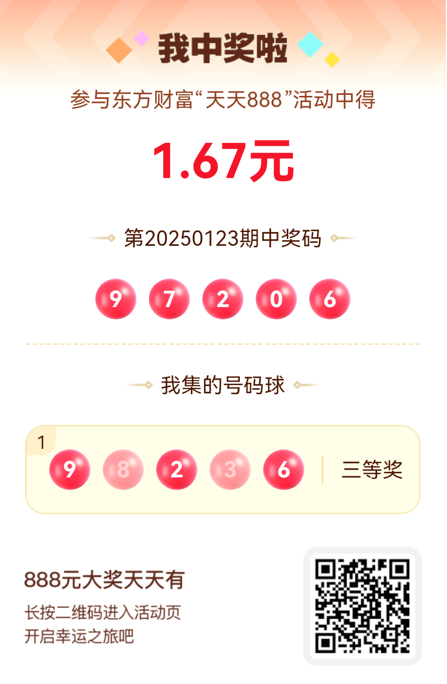 好运来敲门!我在东方财富“天天888”抽奖活动中抽中1.67元红包!快来参与,下一个幸运星可能就是你!
