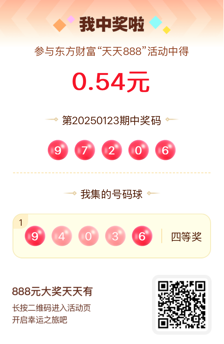 好运来敲门!我在东方财富“天天888”抽奖活动中抽中0.54元红包!快来参与,下一个幸运星可能就是你!