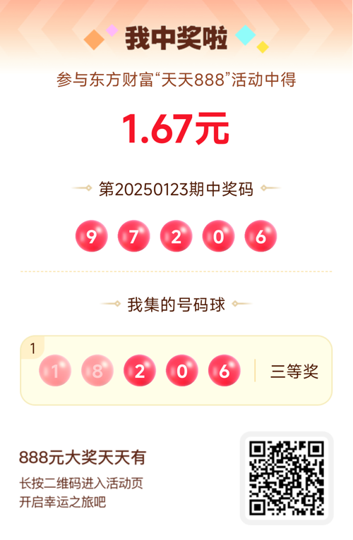 好运来敲门!我在东方财富“天天888”抽奖活动中抽中1.67元红包!快来参与,下一个幸运星可能就是你!