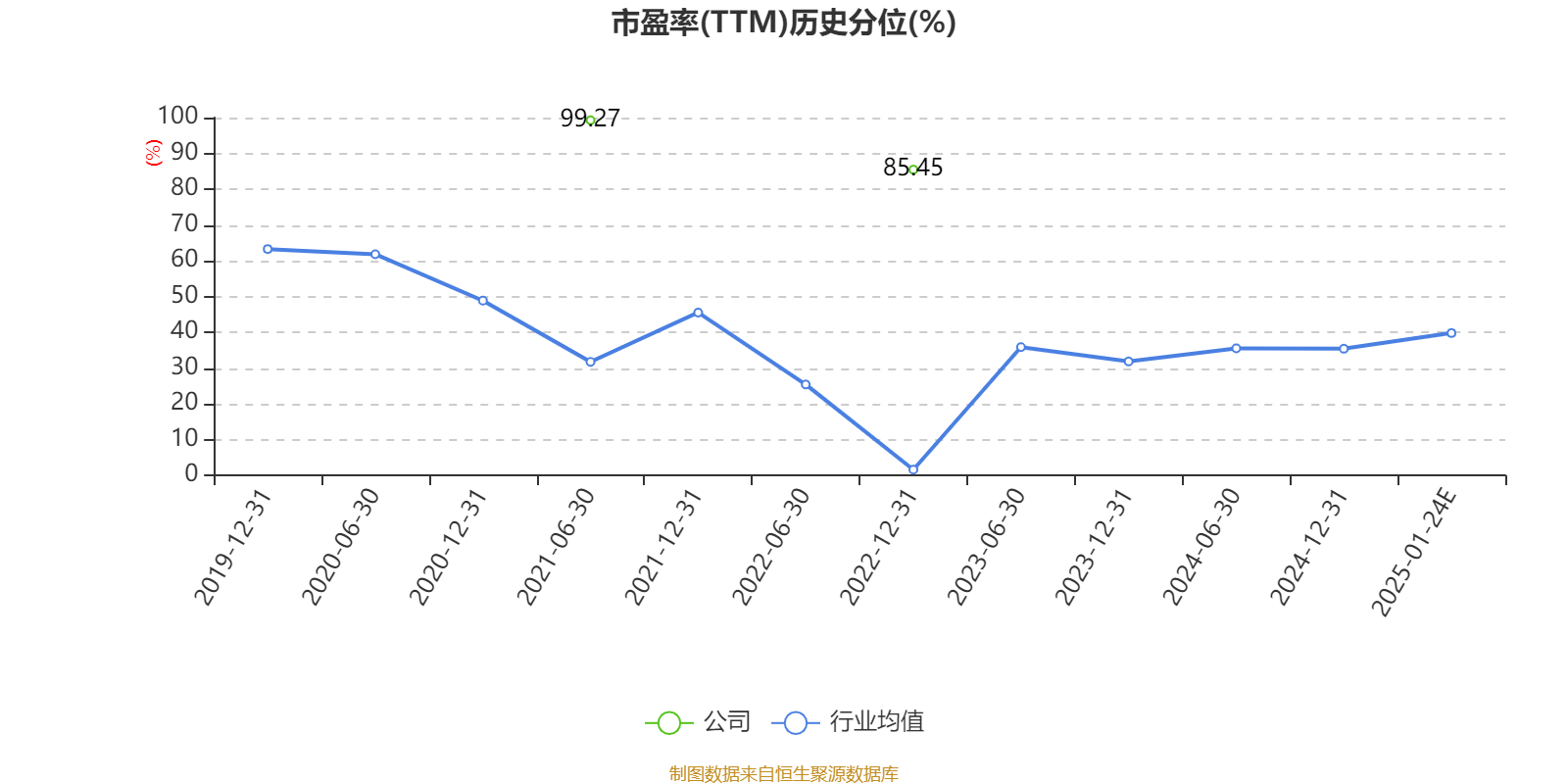 以本次披露业绩预告均值计算,公司近年市盈率(TTM)图如下所示: