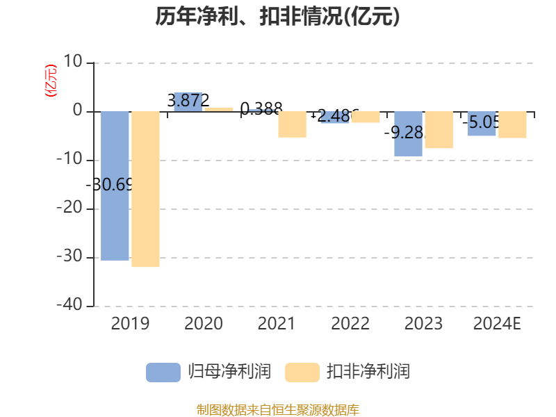 中证智能财讯胜利精密(002426)1月24日晚间披露2024年度业绩预告,预计2024年归母净利润亏损3.5亿元至6.6亿元,上年同期亏损9.28亿元;扣非净利润亏损3.7亿元至7.3亿元,上年同期亏损7.6亿元;基本每股收益-0.1035元/股至-0.1951元/股。以1月24日收盘价计算,胜利精密目前市盈率(TTM)约为-15.52倍至-29.26倍,市净率(LF)约3.18倍,市销率(TTM)约2.83倍。