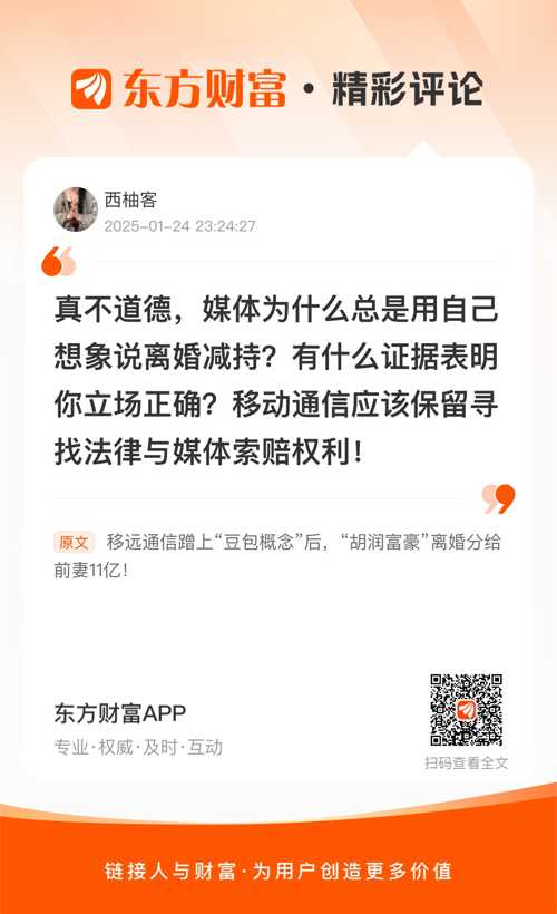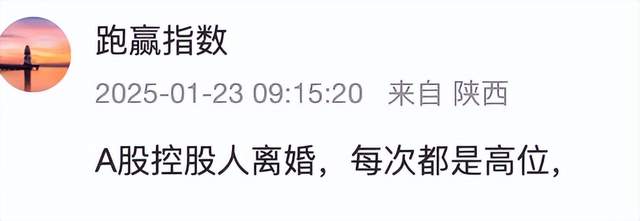 但在股价高涨,业绩大超预期的之际,实控人宣布离婚,难免引发市场对其“技术性离婚”的质疑。有投资者发帖称,“4.8%,拿捏的很到位。可以一次性全部减持掉。”“技术性离婚经典永流传。”还有股民表示,“A股控股人离婚,每次都是高位。”“为减持创造条件”。