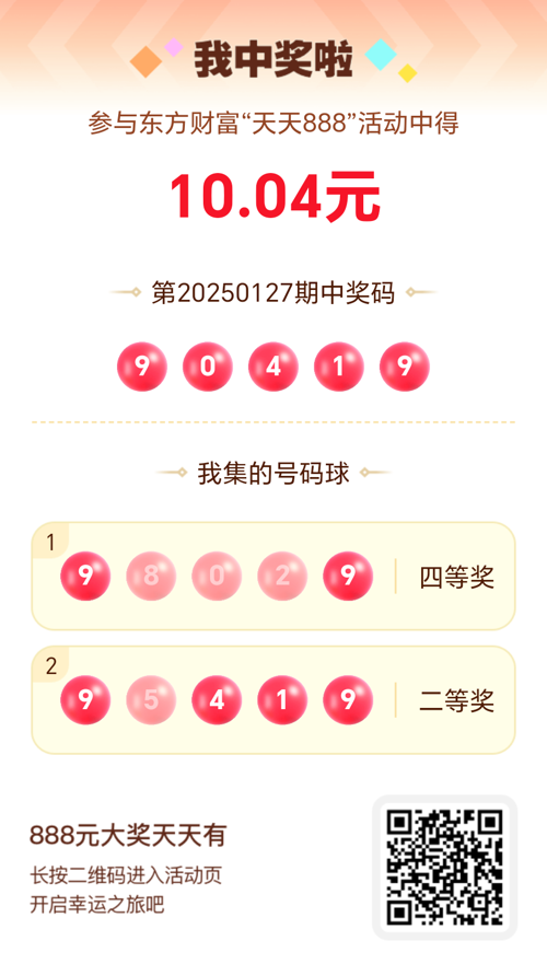 好运来敲门!我在东方财富“天天888”抽奖活动中抽中10.04元红包!快来参与,下一个幸运星可能就是你!