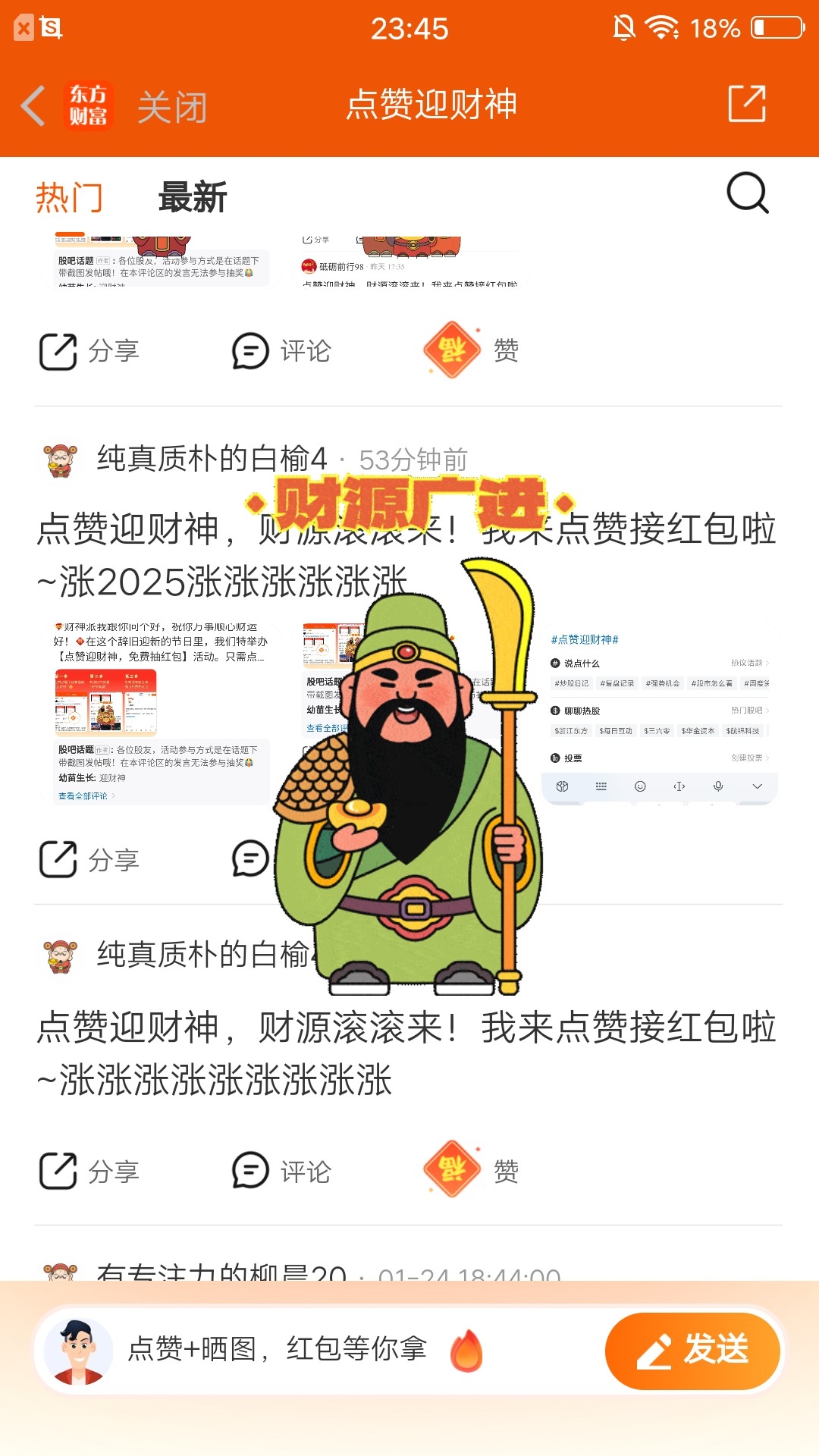 点赞迎财神,财源滚滚来!我来点赞接红包啦~