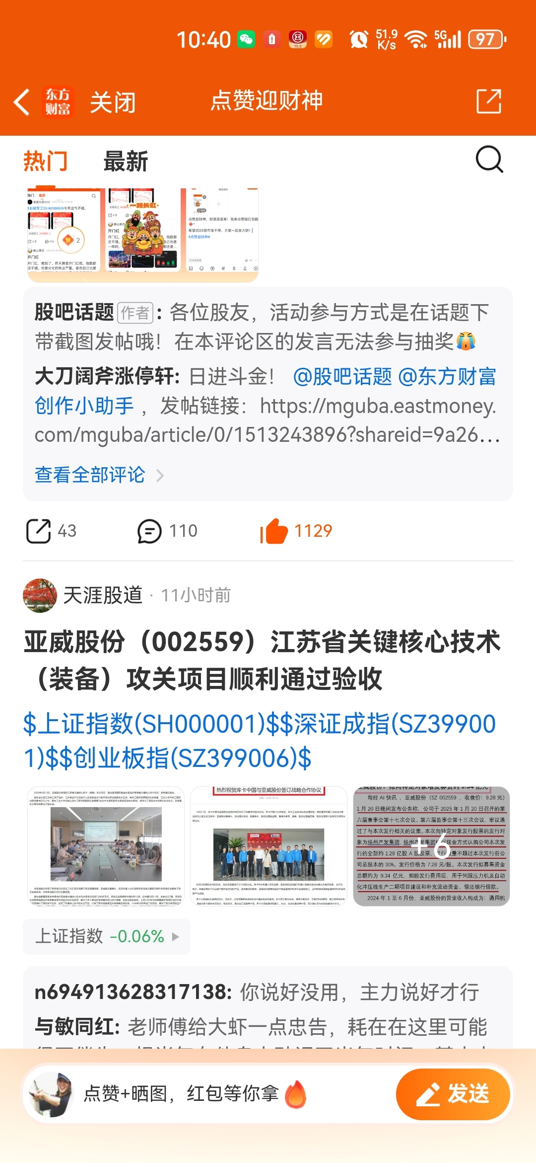 温馨提示: 1.根据《证券法》规定,禁止编造、传播虚假信息或者误导性信息,扰乱证券市场;2.用户在本社区发表的所有资料、言论等仅代表个人观点,与本网站立场无关,不对您构成任何投资建议。用户应基于自己的独立判断,自行决定证券投资并承担相应风险。《东方财富社区管理规定》