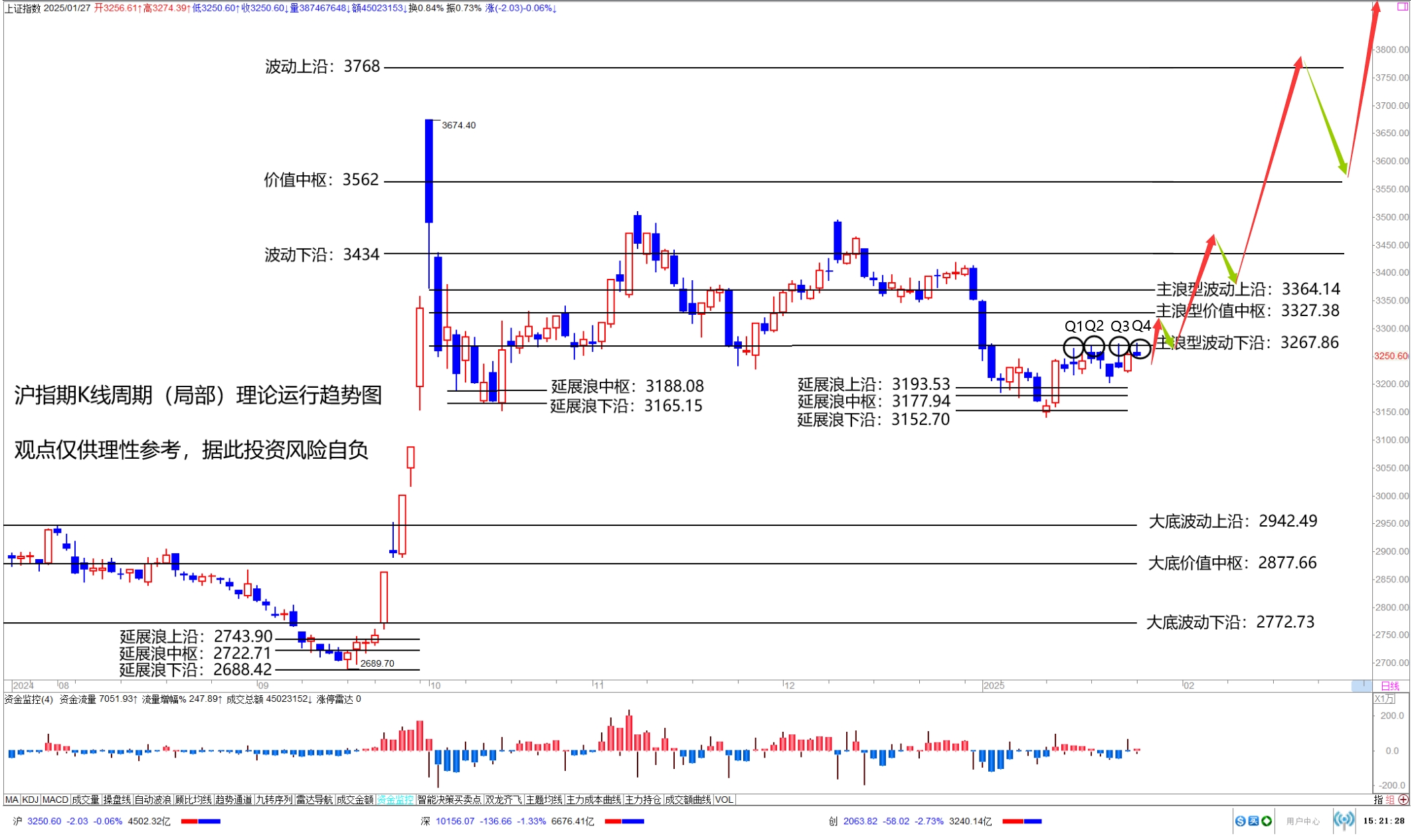 新春首日为大家回忆下沪指的理论走势!上证指数15分钟周期理论运行趋势图上证指数日