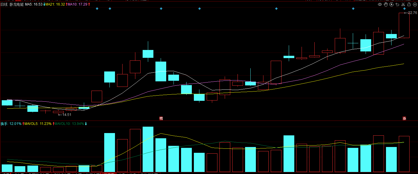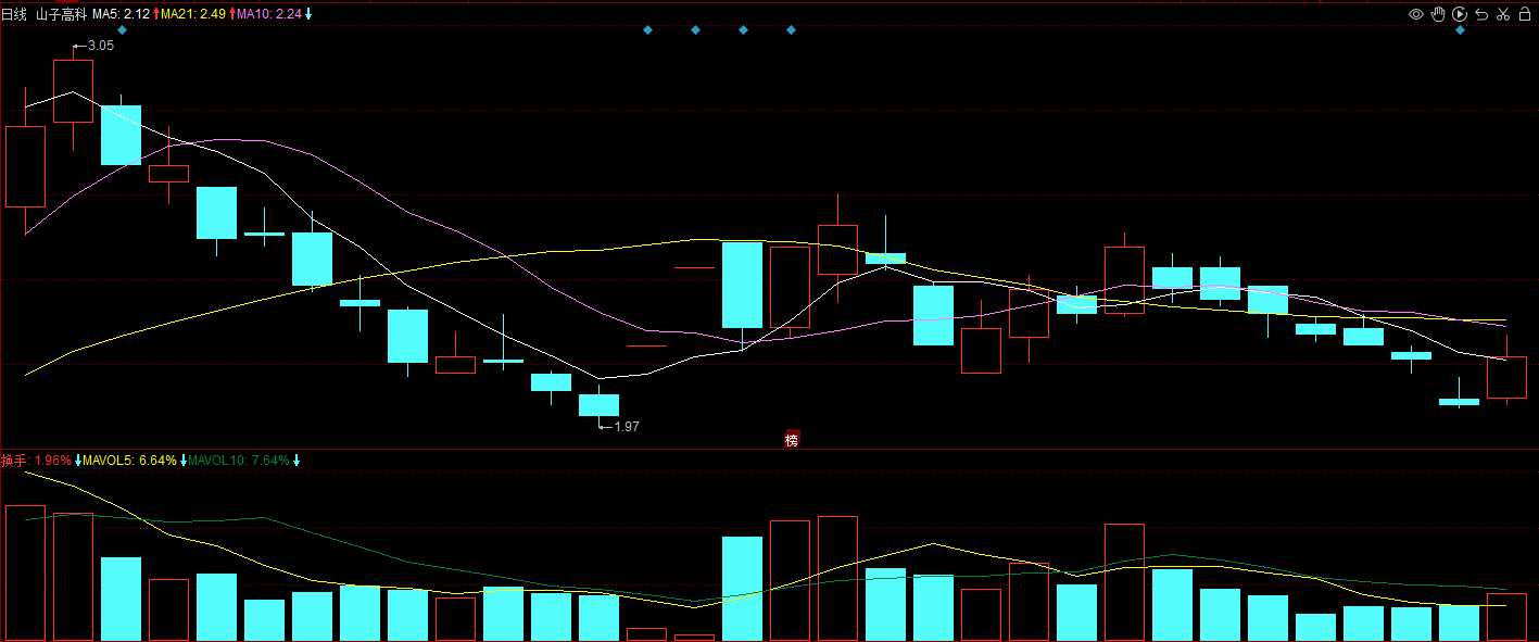 山子高科(000981)公司主营业务为整车业务和高端制造业,其中高端制造业专注于研发,生产和销售汽车变速器,主要产品为无级变速器(CVT),同时致力于研发双离合变速器(DCT),混合动力总成系统和纯电动动力总成系统。山子高科建立从高端零部件制造、整车制造、出行服务到半导体材料的高端制造产业链生态圈。昨天早盘竞价小幅高开,开盘后一直围绕在均价线的附近震荡,这里从分时来看也是典型的洗盘,从K线来看经过了连续7天阴线的洗盘后终于迎来了反弹,并且尾盘一度冲高到涨停,虽然冲高回落,但是整体走势还是非常不错的,昨天的止跌企稳但是还是得继续看今天能否继续走出确认性的阳线,一旦今天成功确认企稳,那么有望走出强势反弹行情,符合这种预期可以选择继续格局,但是一旦再次收出反包阴线则说明并没有真正走强,这种情况就要考虑果断离场。