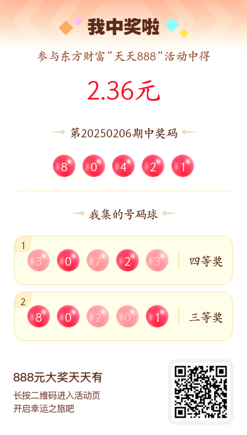 好运来敲门!我在东方财富“天天888”抽奖活动中抽中2.36元红包!快来参与,下一个幸运星可能就是你!