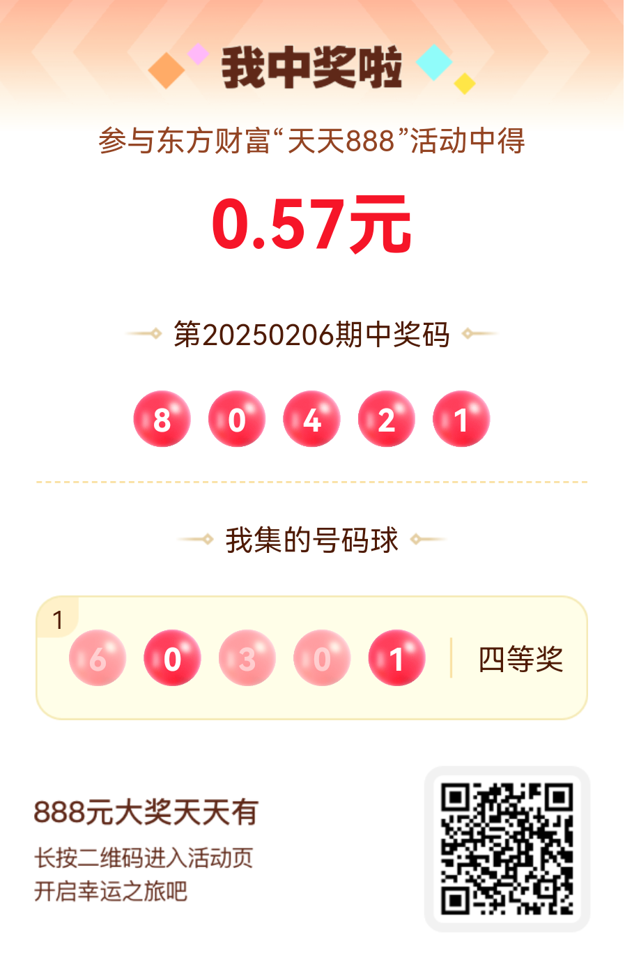 好运来敲门!我在东方财富“天天888”抽奖活动中抽中0.57元红包!快来参与,下一个幸运星可能就是你!