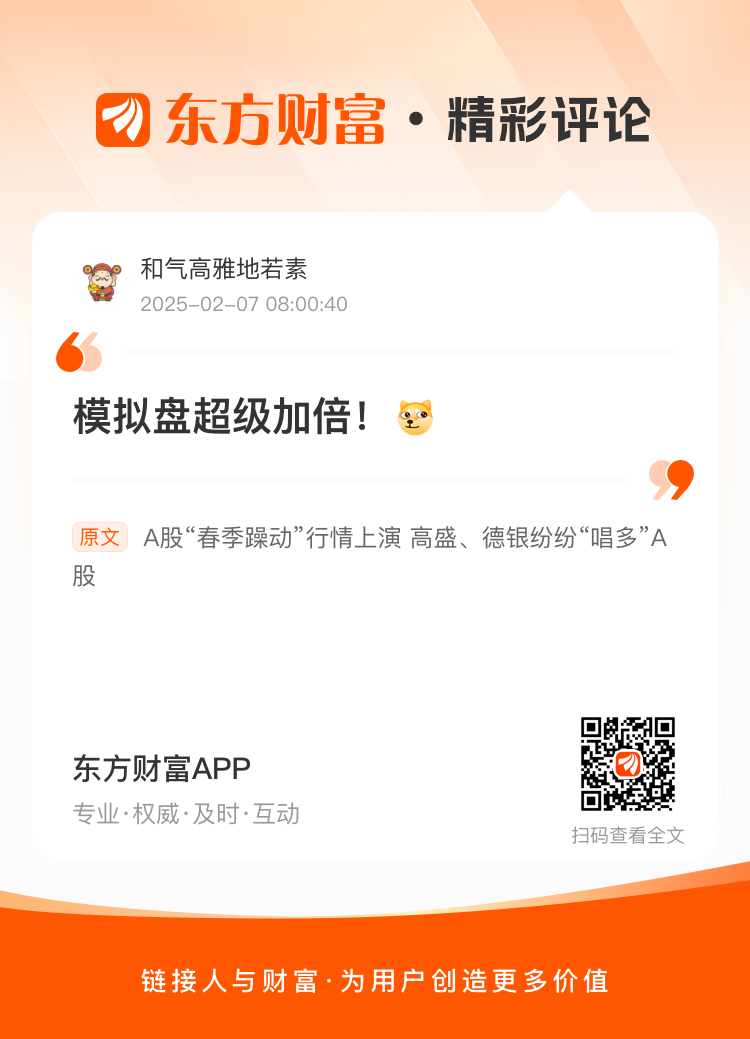 模拟盘超级加倍!我在《A股“春季躁动”行情上演高盛、德银纷纷“唱多”A股》的评论