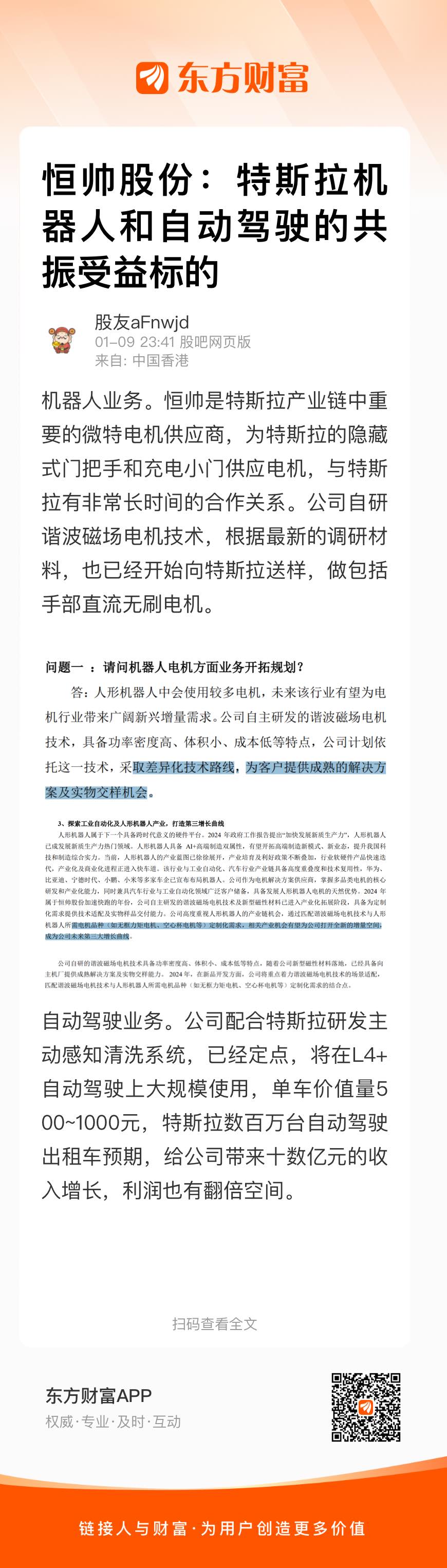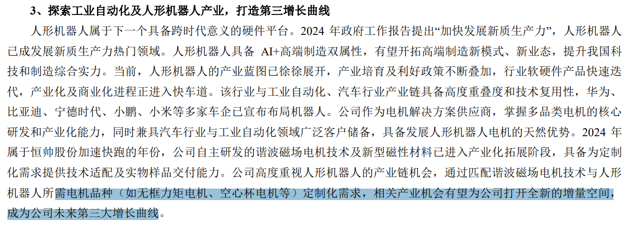 机器人业务。恒帅是特斯拉产业链中重要的微特电机供应商,为特斯拉的隐藏式门把手和充电小门供应电机,与特斯拉有非常长时间的合作关系。公司自研谐波磁场电机技术,根据最新的调研材料,也已经开始向特斯拉送样,做包括手部直流无刷电机。