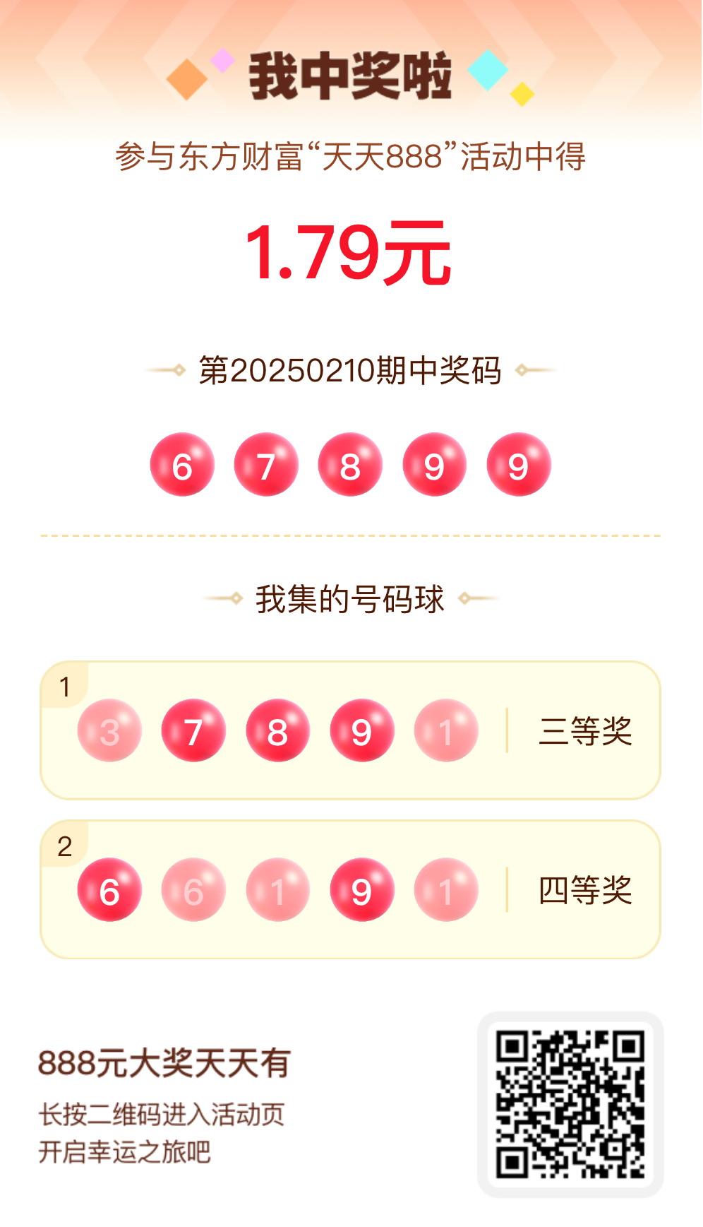 好运来敲门!我在东方财富“天天888”抽奖活动中抽中1.79元红包!快来参与,下一个幸运星可能就是你!