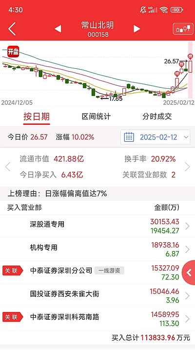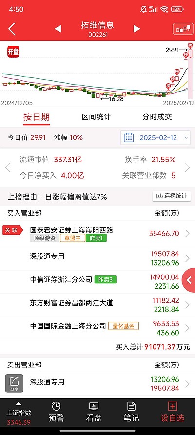 常山北明透过拓维信息的龙虎榜与今天常山北明龙虎榜今天全是大单毫不犹豫的买入,能够