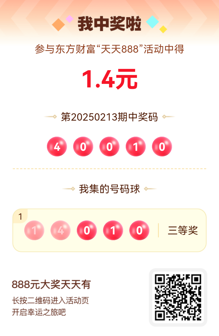 好运来敲门!我在东方财富“天天888”抽奖活动中抽中1.40元红包!快来参与,下一个幸运星可能就是你!