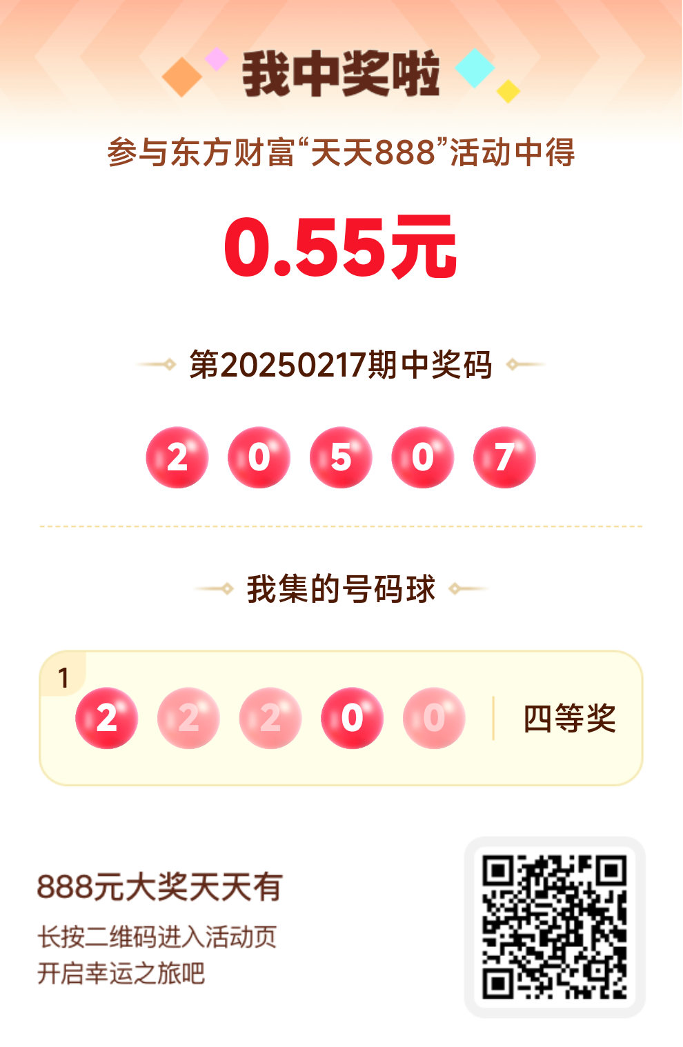 第20250217期天天888活动共1663人中奖,名单如下,请中奖用户在今日15:10前前往活动页面点击【立即领奖】按钮领奖,逾期奖励失效。