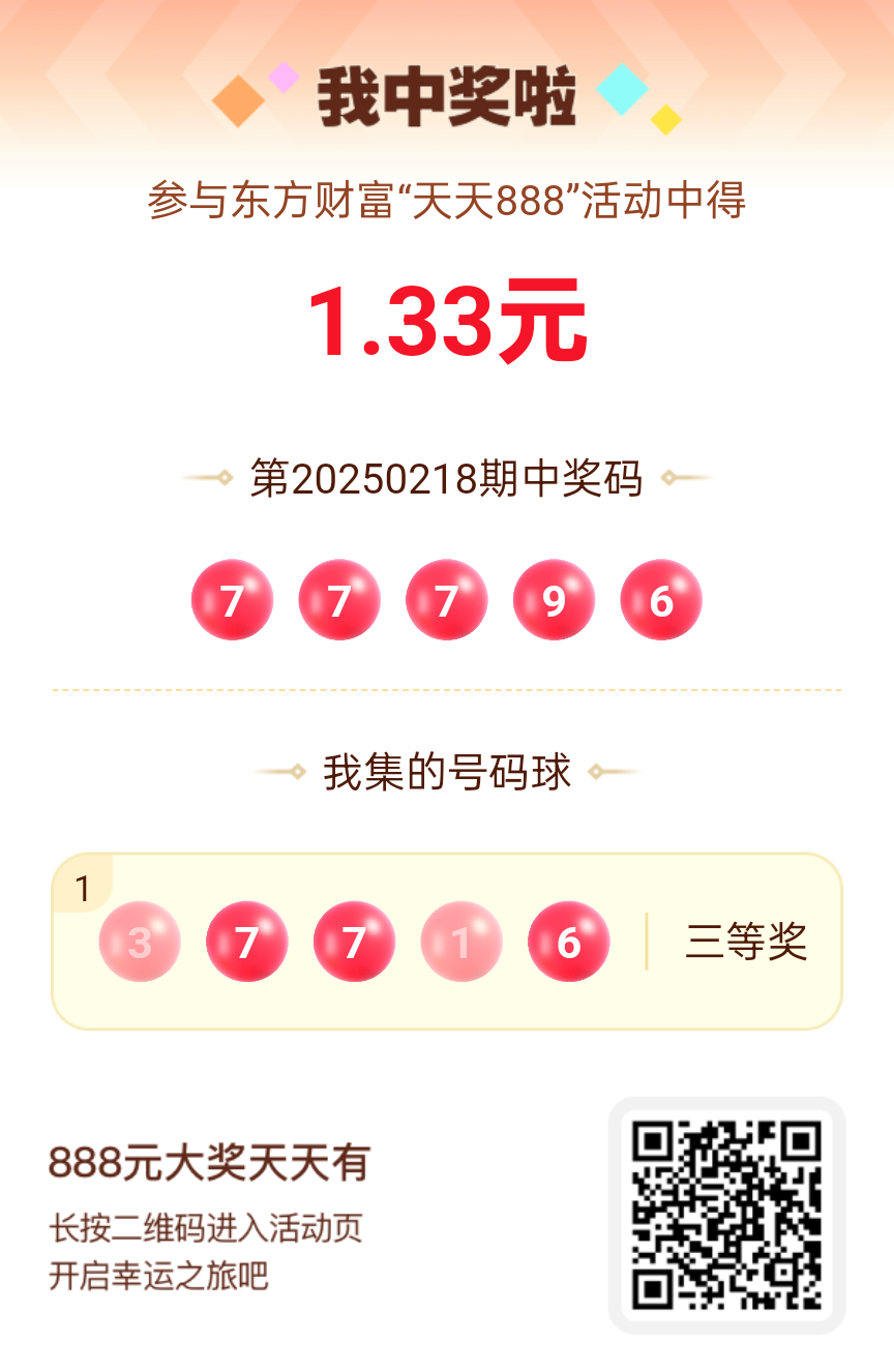 第20250218期天天888活动共1553人中奖,名单如下,请中奖用户在今日15:10前前往活动页面点击【立即领奖】按钮领奖,逾期奖励失效。
