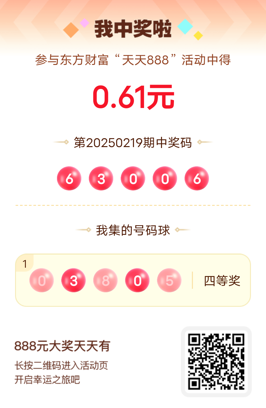 好运来敲门!我在东方财富“天天888”抽奖活动中抽中0.61元红包!快来参与,下一个幸运星可能就是你!