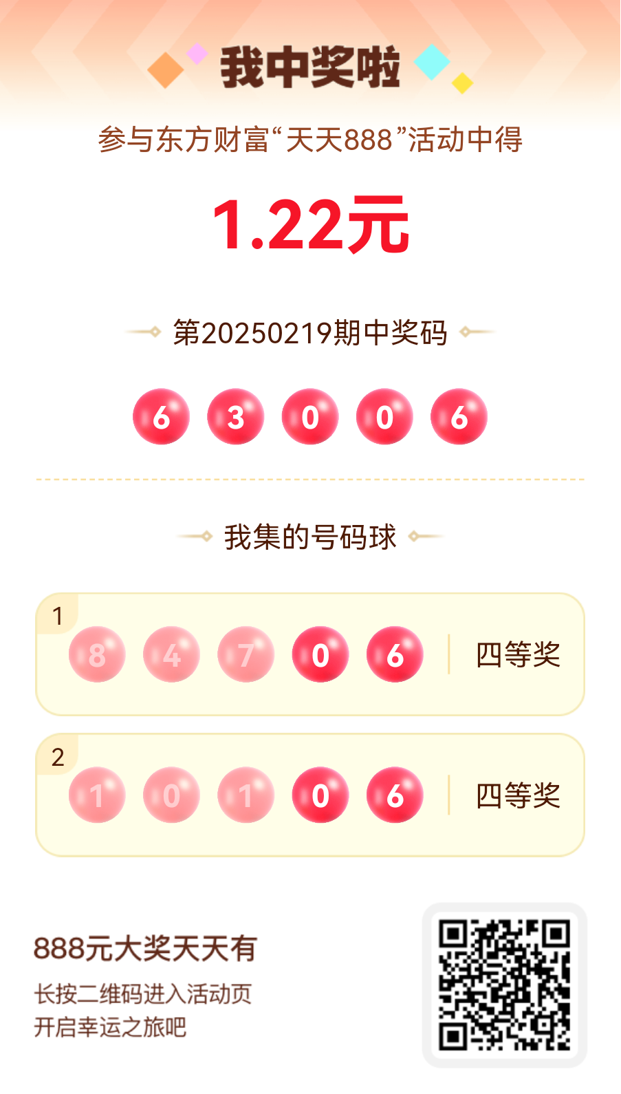 好运来敲门!我在东方财富“天天888”抽奖活动中抽中1.22元红包!快来参与,下一个幸运星可能就是你!
