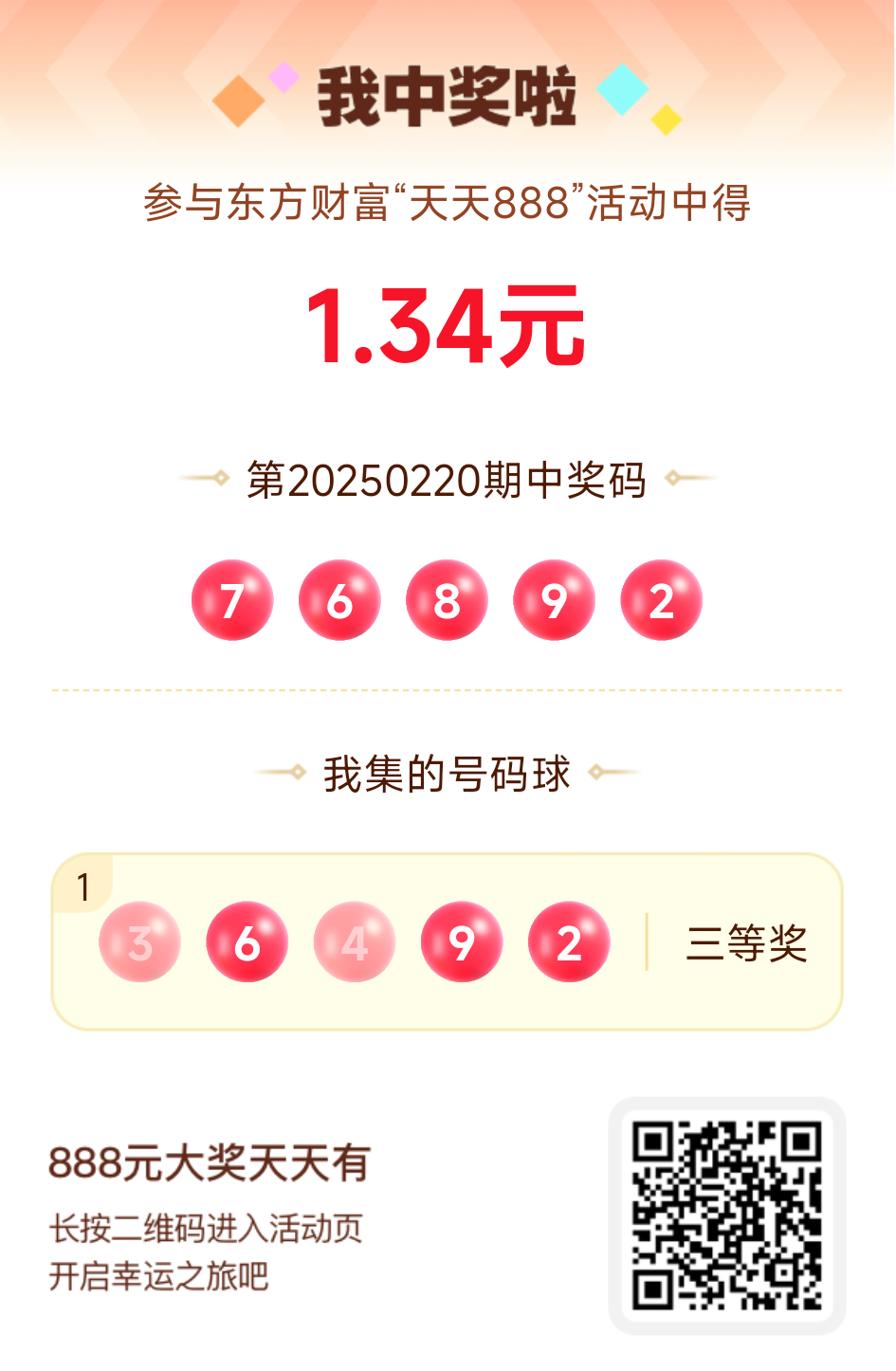第20250220期天天888活动共1548人中奖,名单如下,请中奖用户在今日15:10前前往活动页面点击【立即领奖】按钮领奖,逾期奖励失效。