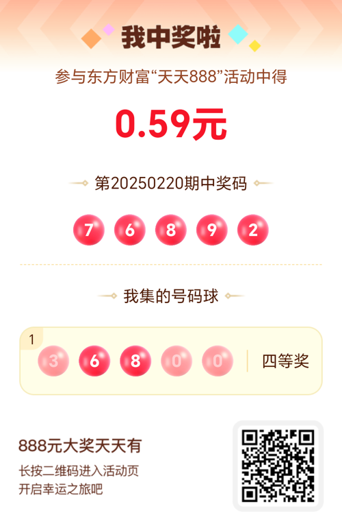 第20250220期天天888活动共1548人中奖,名单如下,请中奖用户在今日15:10前前往活动页面点击【立即领奖】按钮领奖,逾期奖励失效。