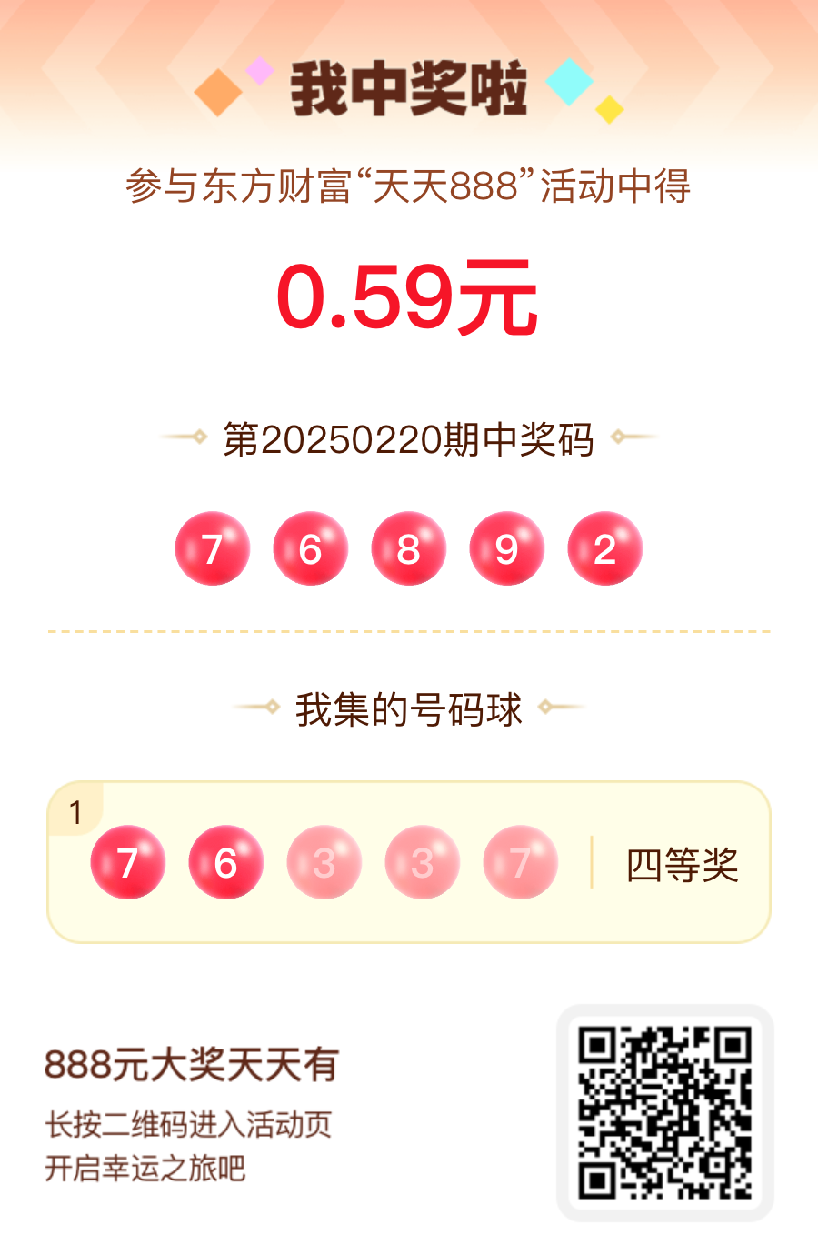 第20250220期天天888活动共1548人中奖,名单如下,请中奖用户在今日15:10前前往活动页面点击【立即领奖】按钮领奖,逾期奖励失效。