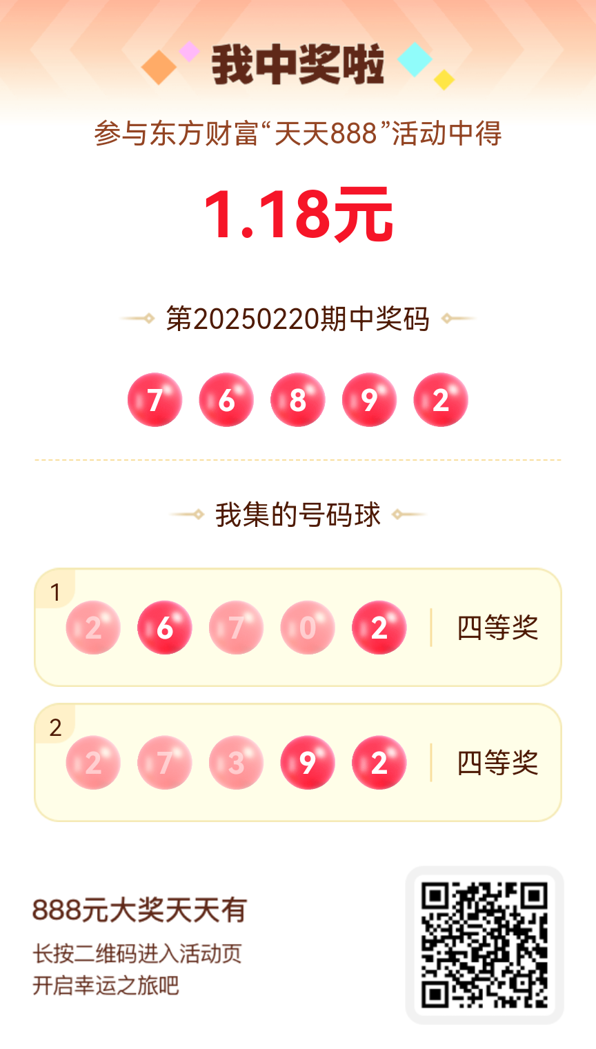 第20250220期天天888活动共1548人中奖,名单如下,请中奖用户在今日15:10前前往活动页面点击【立即领奖】按钮领奖,逾期奖励失效。