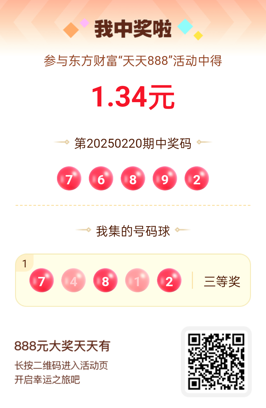 好运来敲门!我在东方财富“天天888”抽奖活动中抽中1.34元红包!快来参与,下一个幸运星可能就是你!