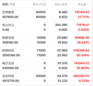 持仓:昨日出每日互动,金山办公,进全志科技。