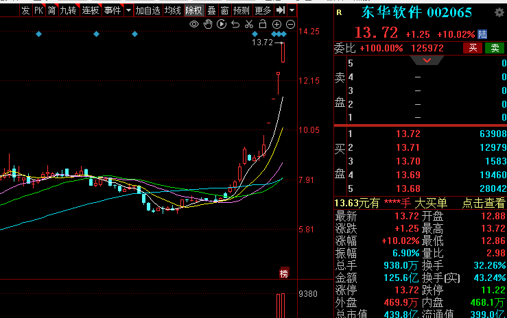 $东华软件(SZ002065)$:目前处于四板晋级阶段,虽然当下盘面环境对其连板形成一定阻碍,但我却认为这是一个难得的博弈机会。从技术分析角度来看,其股价走势和成交量等指标能反映出市场对它的关注度和资金的参与程度。如果后续能出现成交量有效放大,这意味着市场资金对其认可度提高,大量资金流入;均线系统呈现良好排列,如短期均线向上穿过长期均线形成金叉,这些积极的技术信号一旦出现,再加上暴力回流,按照市场规律,它不仅将开启新的上涨阶段,还会带动整个相关板块热度飙升。