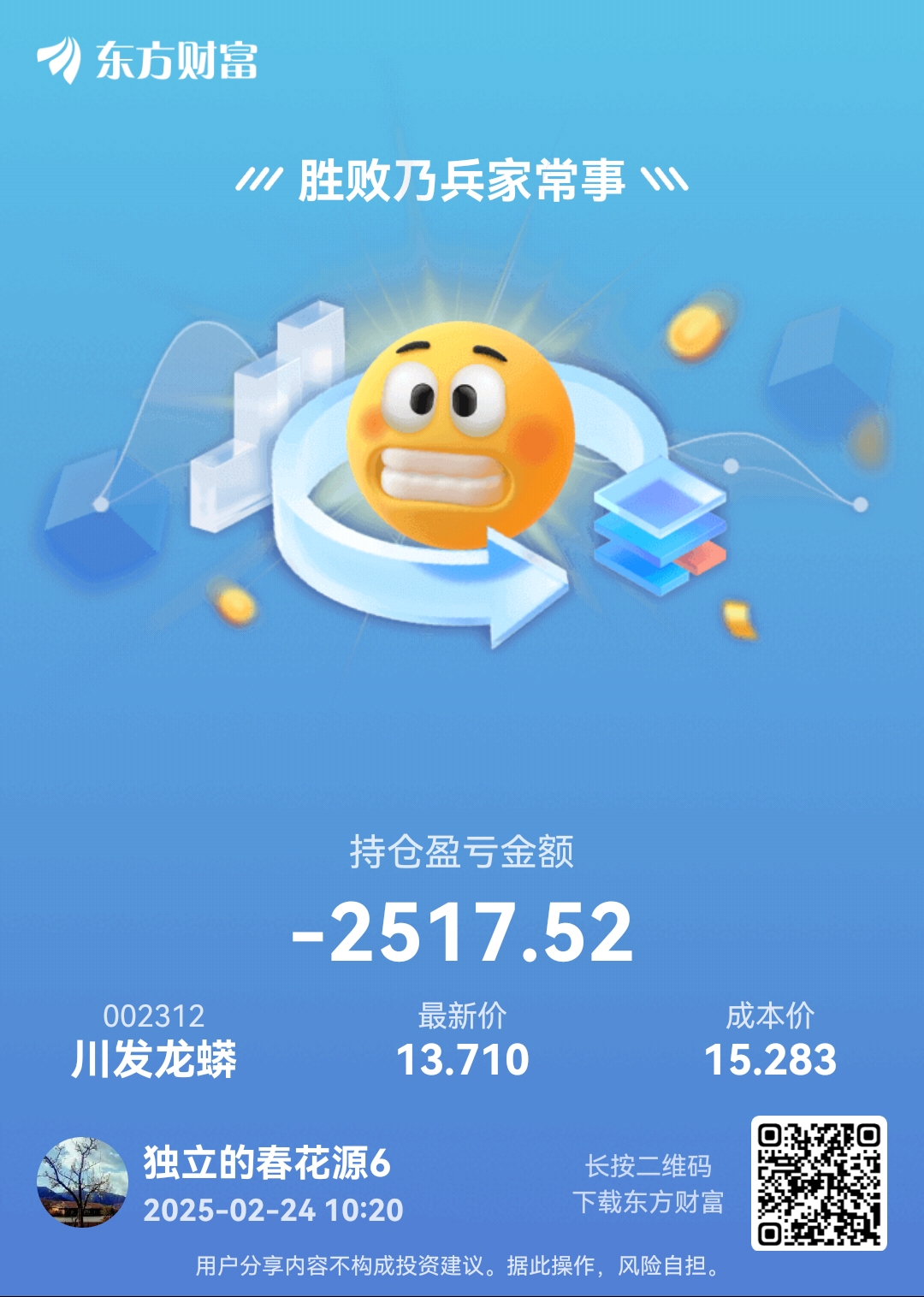 温馨提示: 1.根据《证券法》规定,禁止编造、传播虚假信息或者误导性信息,扰乱证券市场;2.用户在本社区发表的所有资料、言论等仅代表个人观点,与本网站立场无关,不对您构成任何投资建议。用户应基于自己的独立判断,自行决定证券投资并承担相应风险。《东方财富社区管理规定》