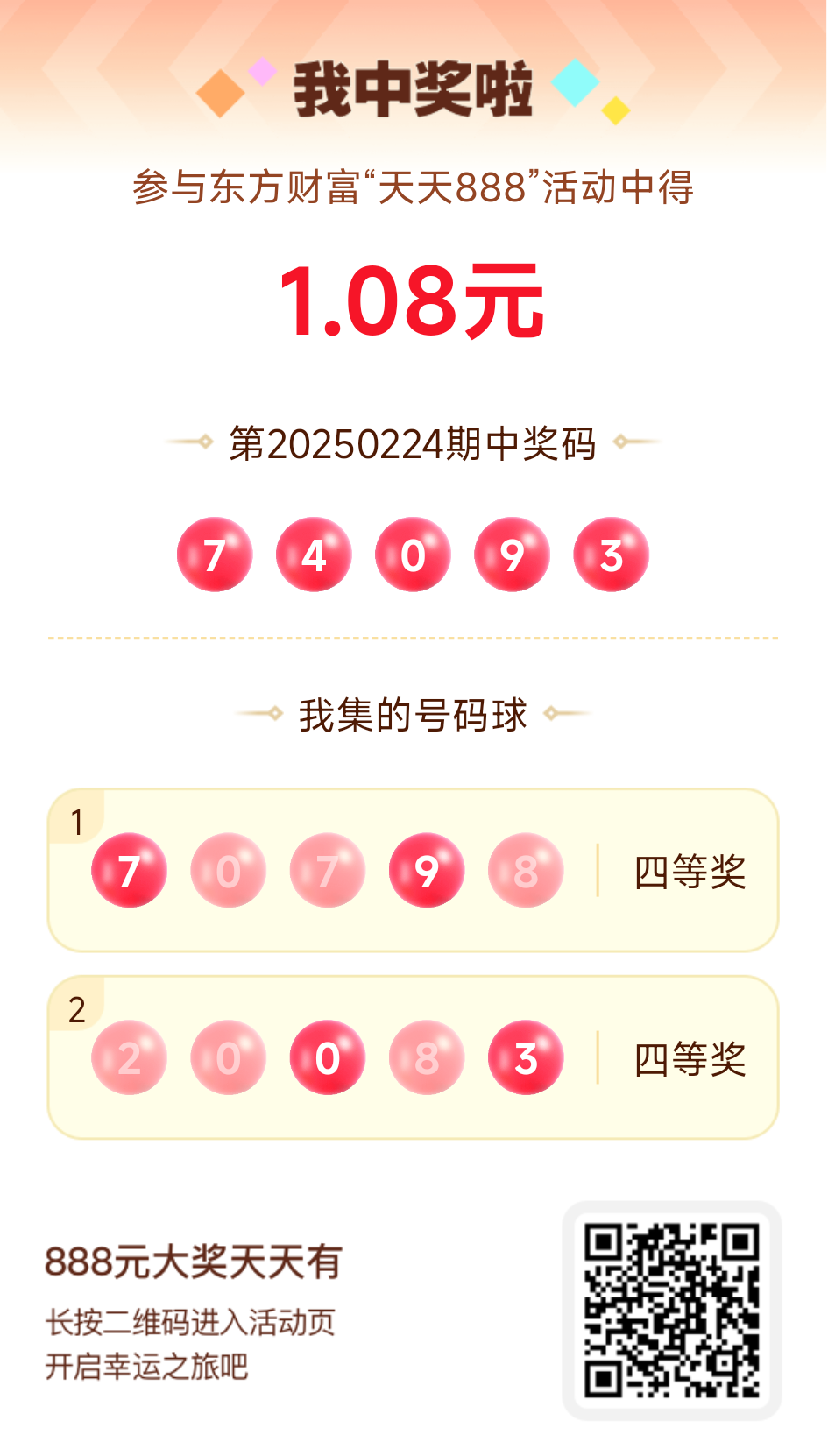 好运来敲门!我在东方财富“天天888”抽奖活动中抽中1.08元红包!快来参与,下一个幸运星可能就是你!