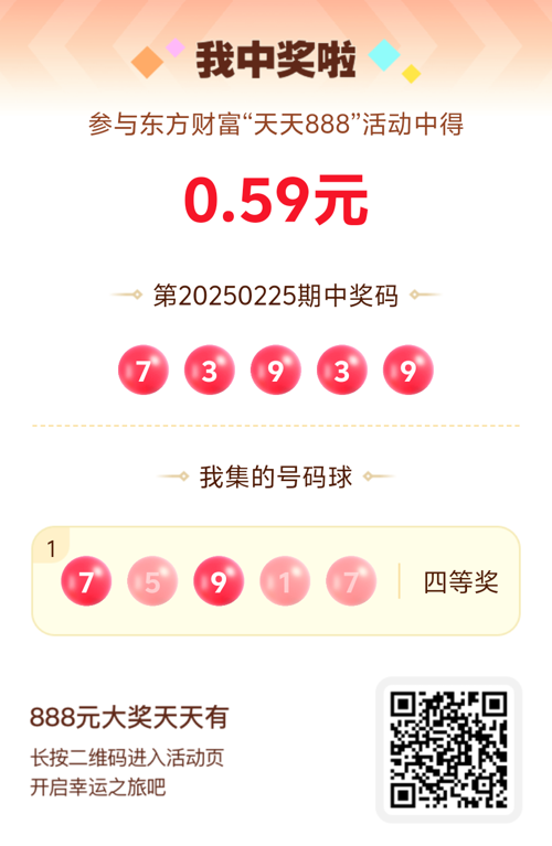 第20250225期天天888活动共1544人中奖,名单如下,请中奖用户在今日15:10前前往活动页面点击【立即领奖】按钮领奖,逾期奖励失效。