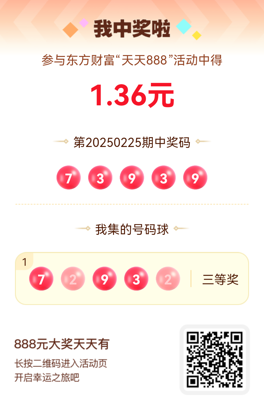 第20250225期天天888活动共1544人中奖,名单如下,请中奖用户在今日15:10前前往活动页面点击【立即领奖】按钮领奖,逾期奖励失效。