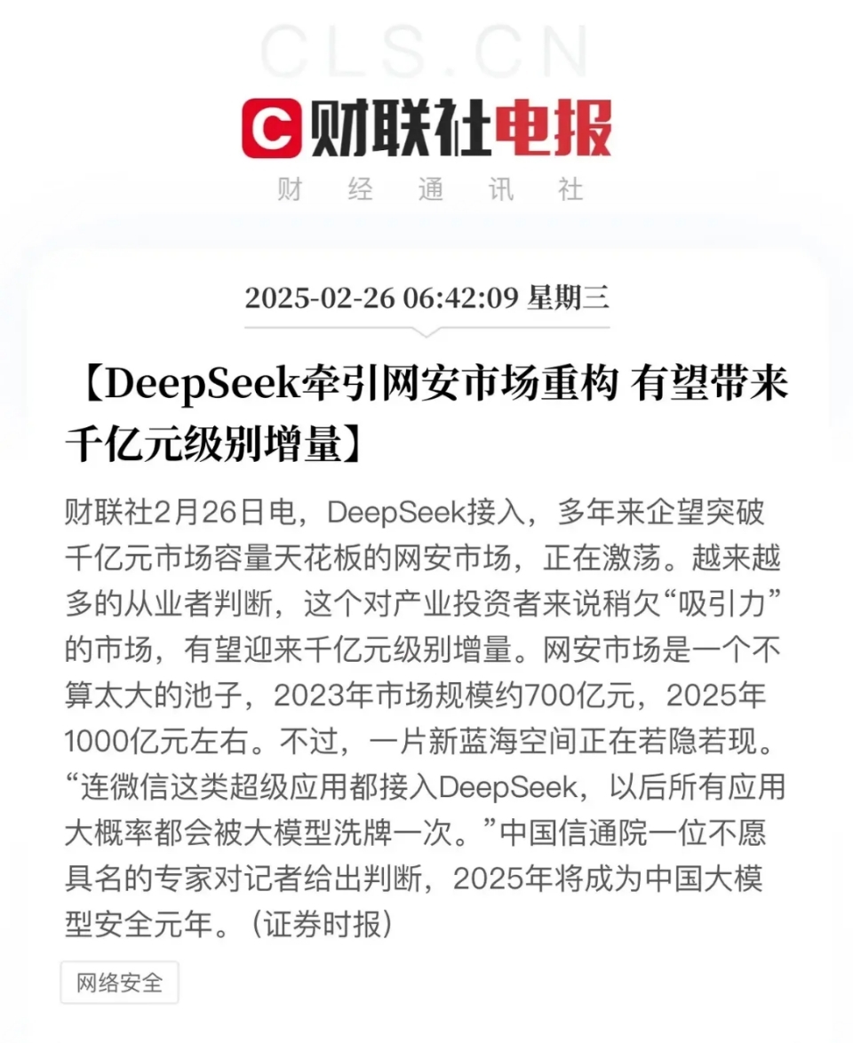 Deepseek的风,风吹到了网络安全。先前网安五虎在Deepseek面临网络攻