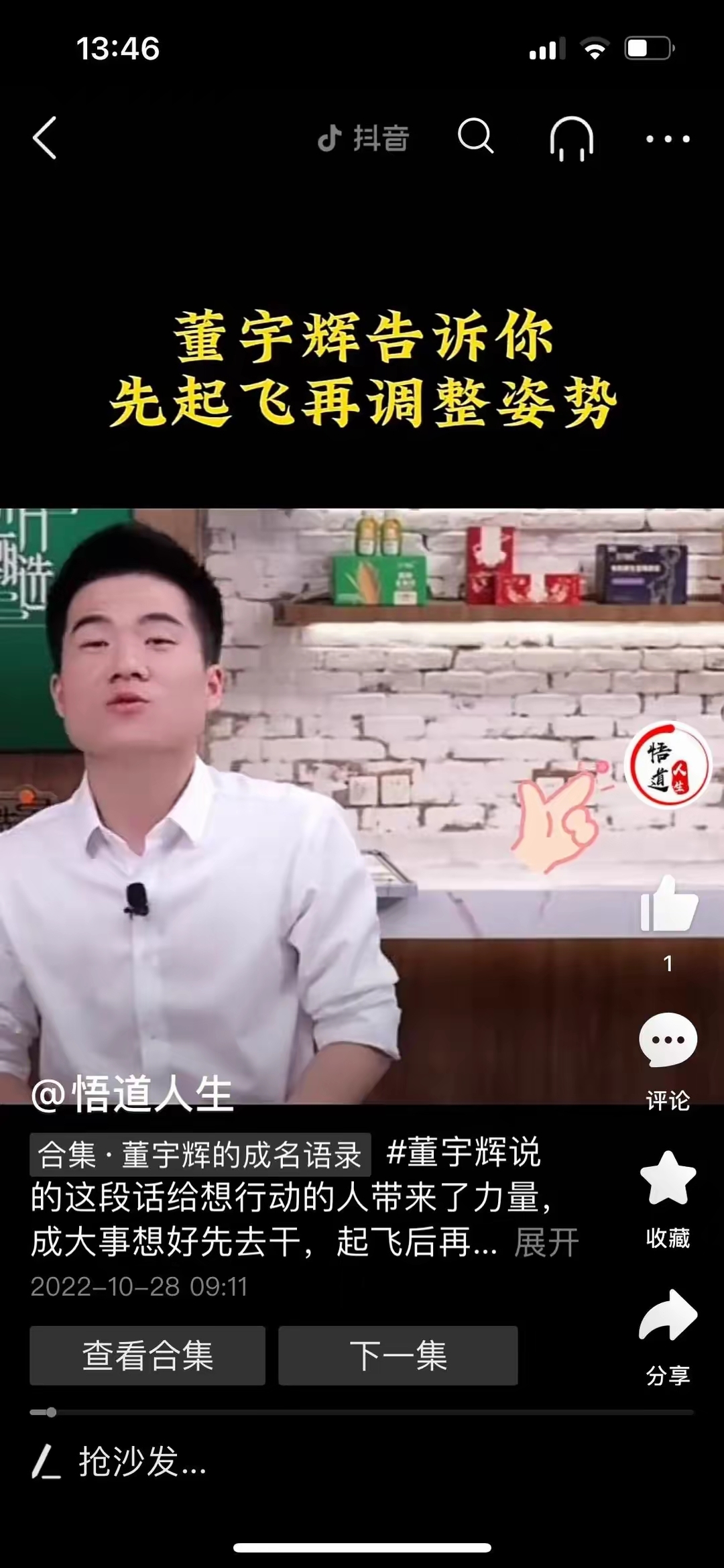 主持人一脸认真,以为他会说出什么深刻的道理,没想到饺子嘿嘿一笑说: