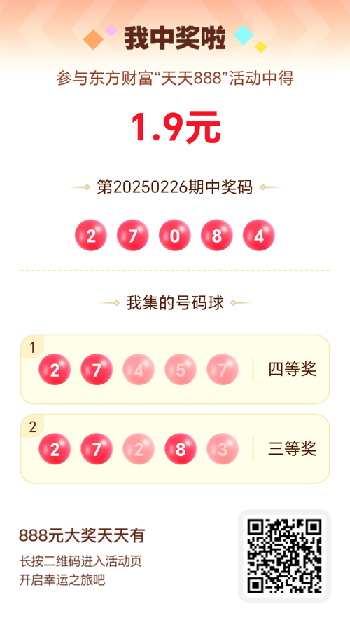 第20250226期天天888活动共1557人中奖,名单如下,请中奖用户在今日15:10前前往活动页面点击【立即领奖】按钮领奖,逾期奖励失效。