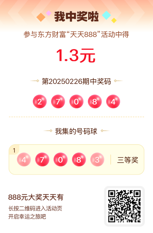 第20250226期天天888活动共1557人中奖,名单如下,请中奖用户在今日15:10前前往活动页面点击【立即领奖】按钮领奖,逾期奖励失效。