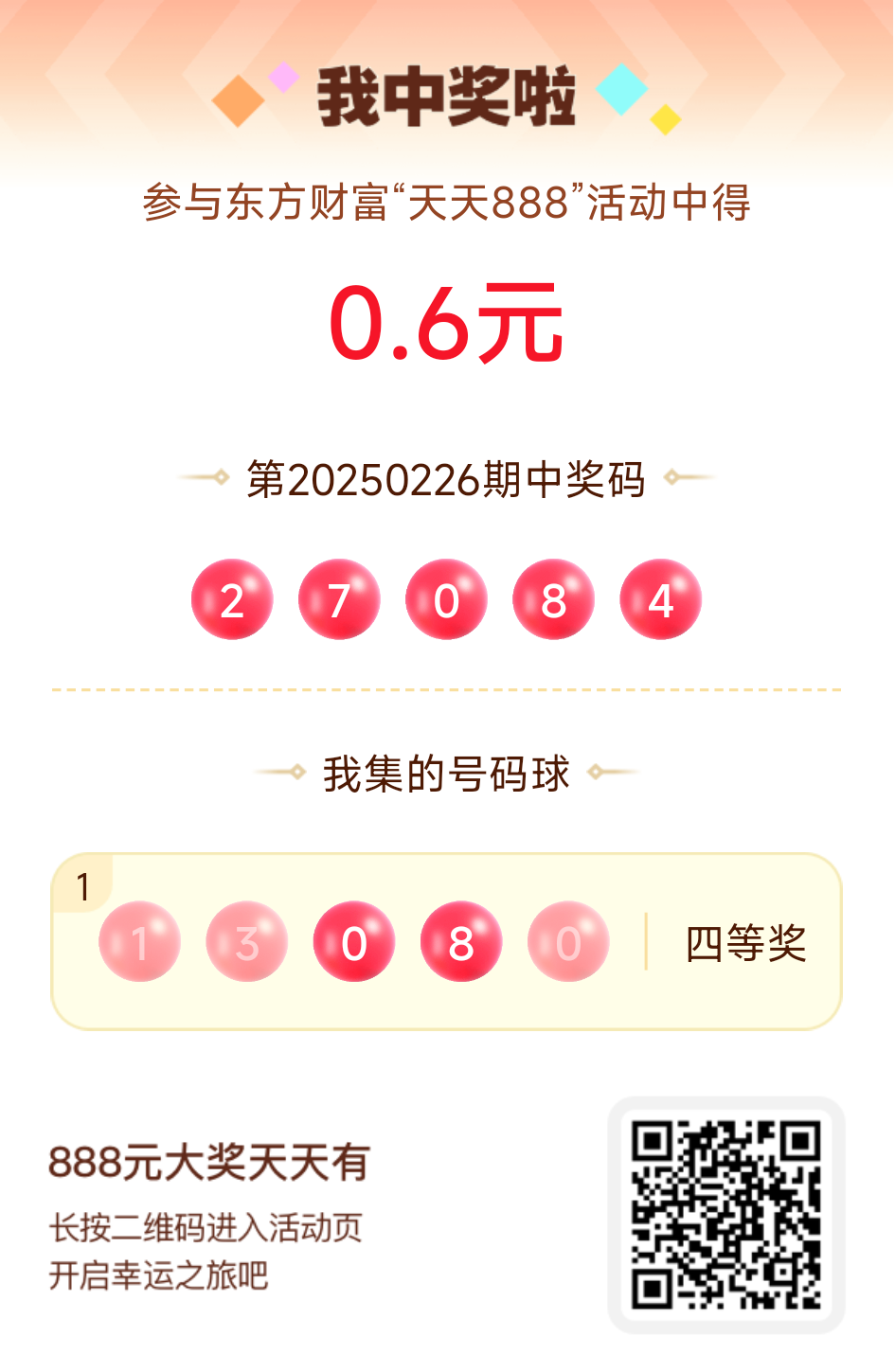 第20250226期天天888活动共1557人中奖,名单如下,请中奖用户在今日15:10前前往活动页面点击【立即领奖】按钮领奖,逾期奖励失效。