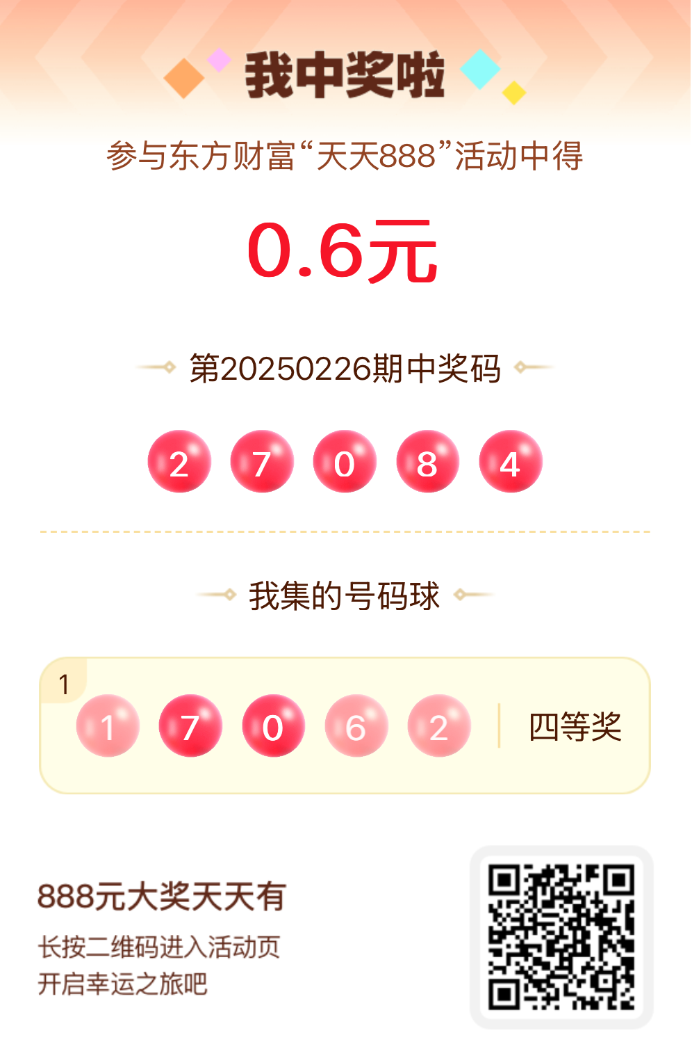 第20250226期天天888活动共1557人中奖,名单如下,请中奖用户在今日15:10前前往活动页面点击【立即领奖】按钮领奖,逾期奖励失效。