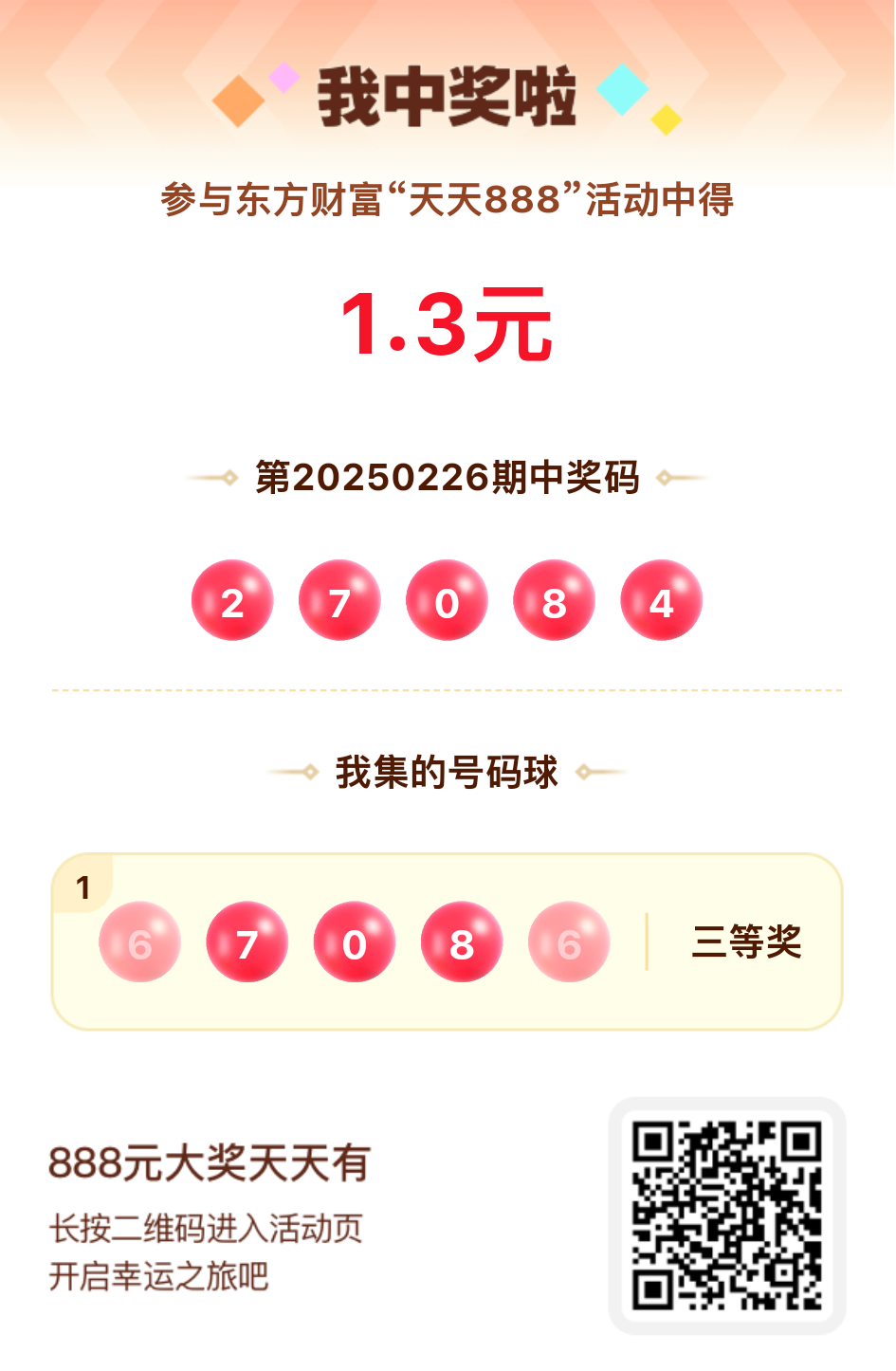 好运来敲门!我在东方财富“天天888”抽奖活动中抽中1.30元红包!快来参与,下一个幸运星可能就是你!