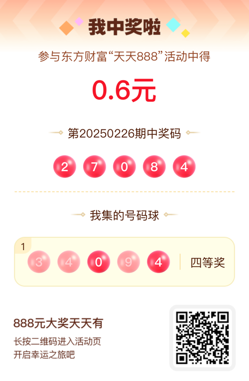 好运来敲门!我在东方财富“天天888”抽奖活动中抽中0.60元红包!快来参与,下一个幸运星可能就是你!