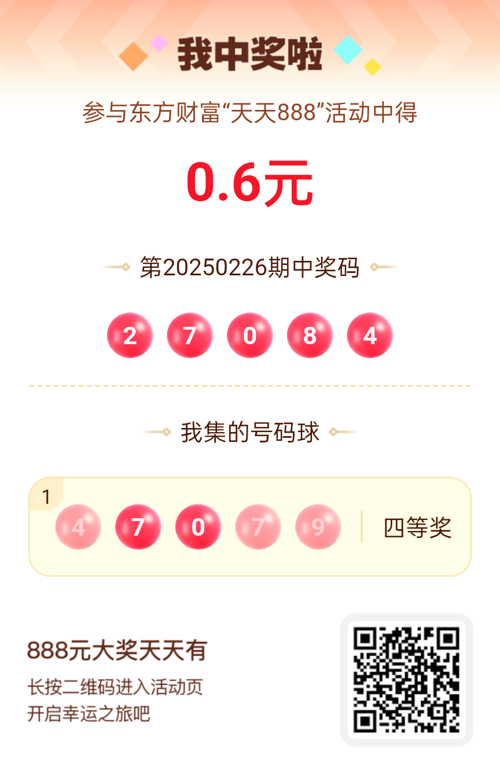 第20250226期天天888活动共1557人中奖,名单如下,请中奖用户在今日15:10前前往活动页面点击【立即领奖】按钮领奖,逾期奖励失效。